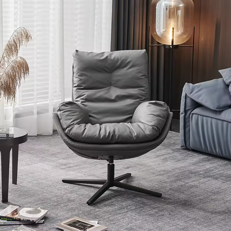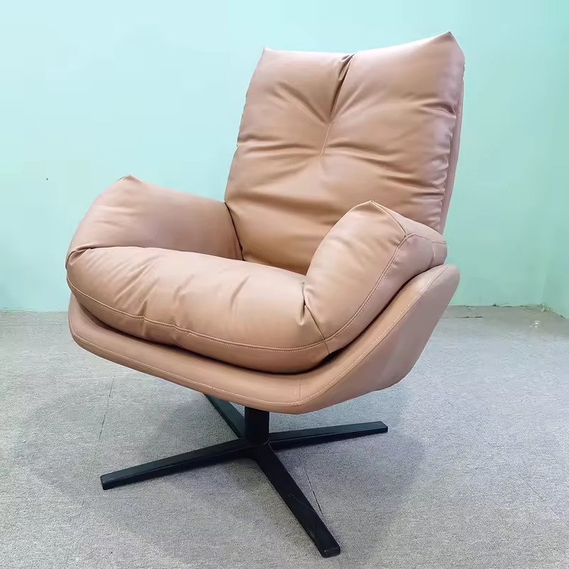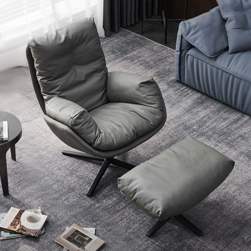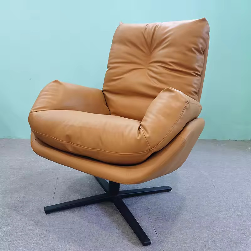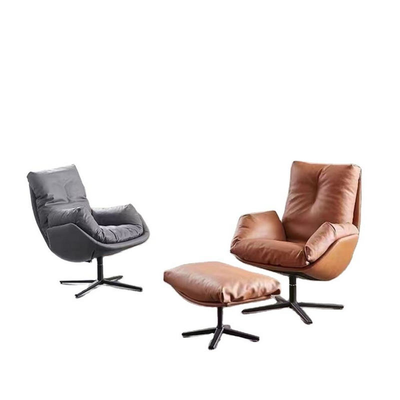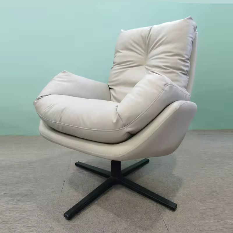 Constructed with a durable curved panel frame, plush down cushion, high-quality silicone leather upholstery, and a sturdy 4-star black metal base, this chair delivers exceptional comfort and long-lasting durability. Its ergonomic 4-zone support design (head, spine, waist, hip) ensures all-day comfort without backache, while the 360° flexible rotation and matching down-filled ottoman offer ultimate relaxation for living rooms, offices, and commercial spaces.